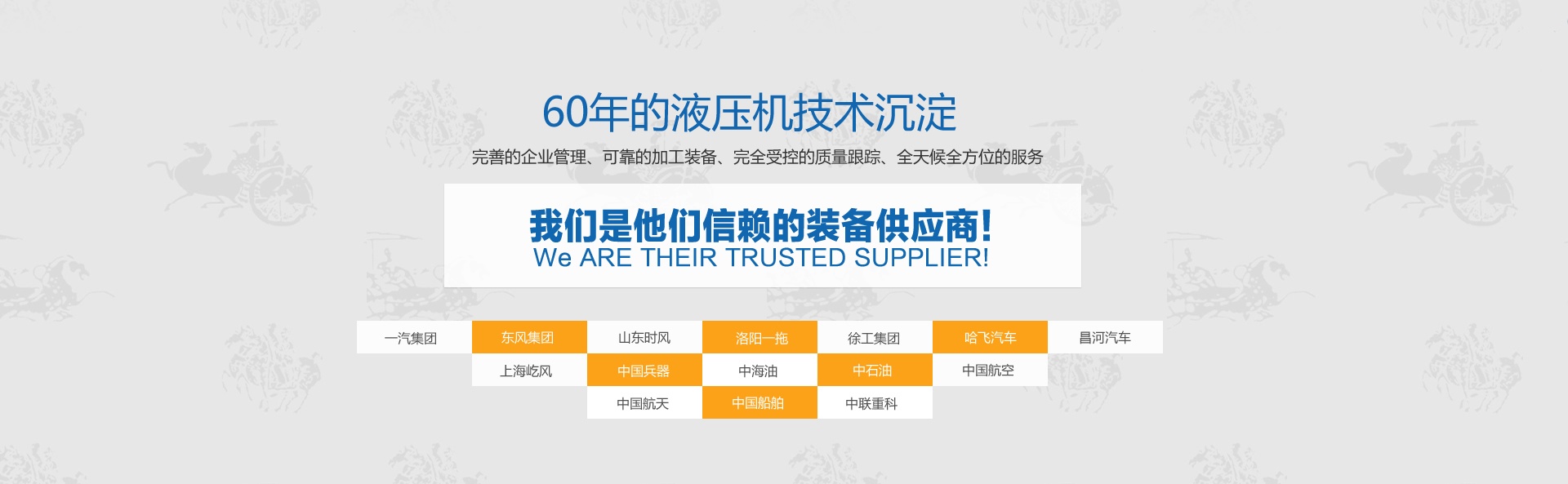 徐州壓力機械有限公司徐州壓力機械有限公司(徐州鍛壓設備制造廠),液壓機行業簡稱“徐鍛”,座落在素有“五省通衢”之稱的徐州,毗鄰楚王陵兵馬俑公園。始建于1958年,2008年與代號為九三五二廠的軍工企業江蘇永康機械有限公司實施戰略重組改制成股份制企業,改制后的“徐鍛”秉承老國企“拼搏、務實、創新”的優良傳統、汲取軍工企業